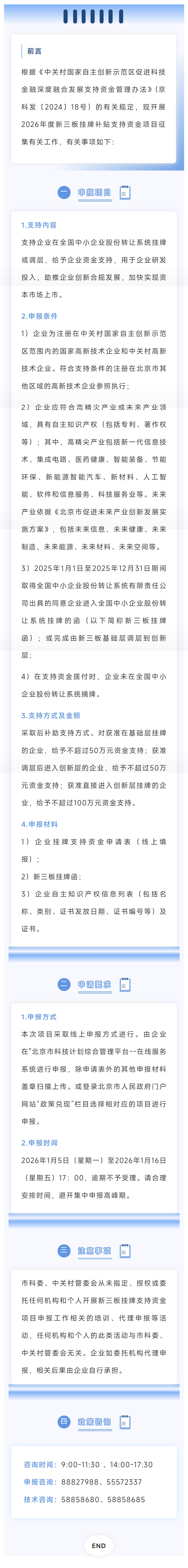 政策速递 | 最高100万,2026年度新三板挂牌补贴支持资金项目征集启动